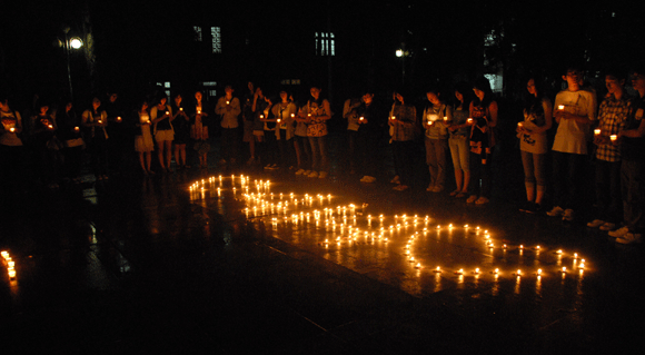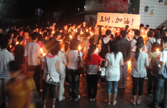 On the night of April 21, 2010, SYSU students hold separate activities on the four campuses. They lit candles, mourned the dead in the earthquake of Yushu: may the victims rest in peace and survivors be strong.