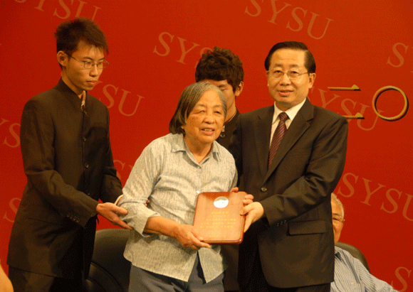 Zhen Detao, the Secretary of the Party Committee of SYSU, awarded the prize to Professor Wang Zongyan. Wang Daqiang, the son of Professor Wang Zongyan, received the prize on behalf of Professor Wang Zongyan.