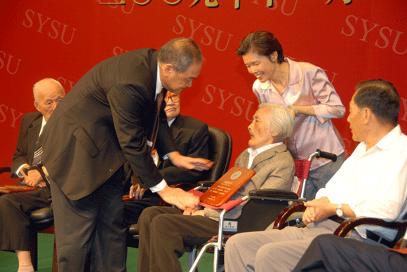 President Huang said that as an academic community, the university should be a prism. The three sectors--teachers, faculty and students, who made up the university, form the three sides of the prism. The people in the university should embody only one goal: to dedicate themselves to the developing of the academic community. It depends on the loyal service of every individual in the community to achieve the goal. When we evaluate the standards of the “Excellent Service”, we should not confine it to the achievements in academic field or the contributions of the management. An important standard of evaluating the excellent service is the loyalty to the cause. There is a limit to one’s life, but Sun Yat-Sen University is to last forever. In the academic community of SYSU, we carry the common ideals, the common goals, the common causes, the common interests, the common honors, and we have the responsibility to make it better. Whoever served in SYSU, his or her every effort would leave a mark on the path of the development of SYSU. The honor of SYSU is made by the loyal service of the people of SYSU, thus the honor of SYSU is shared by everybody at SYSU.