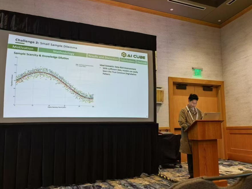 Undergraduate team member Wenfei Li (Class of 2024) presented the winning solution at the PHM Society Annual Conference in Seattle,successfully defending the work during on-site presentations and poster sessions, while engaging in in-depth technical exchanges with international experts. Li's presentation validated the team's methodology and highlighted the professional caliber and global perspective of SYSU students.
