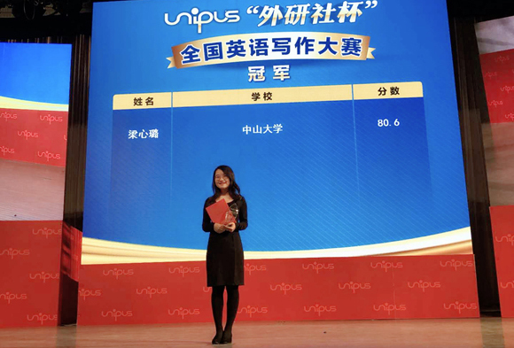On December 8th, 2017, the “FLTRP Cup” Uchallenge English Contests and FLTRP Star Teacher Contest came to a close in Beijing FLTRP International Convention Centre. Three students and one teacher from Sun Yat-sen University (SYSU) participated in the contests and made remarkable achievements. Guo Man, a teacher from the School of Foreign Languages (FLS), won the champion of FLTRP Star Teacher Contest. Liang Xinlu, a student from FLS won the champion of English Writing Contest. Lin Yuhong from FLS, and Daizhang Zhuoran from the School of Sociology and Anthropology, received a second prize in English Public Speaking Contest and English Reading Contest respectively. SYSU broke the record of this nationwide English Contest and became the first university ever crowned two champions in the same year.