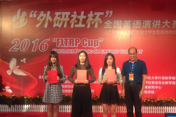 On November 5-6, 2016, the “FLTRP Cup” Uchallenge English Contests (Guangdong Province) of this year was held in Guangdong Polytechnic Normal University. Four students from Sun Yat-sen University (SYSU), winners of the campus contests, attended the contests. Three of them, Wang Zeyu (School of Geography and Planning), Zhang Mengmeng (International School of Business & Finance) and Wei Wei (School of Foreign Languages) won the grand prize in public speaking contest and writing contest, and will go to Beijing in December for the national final contest.