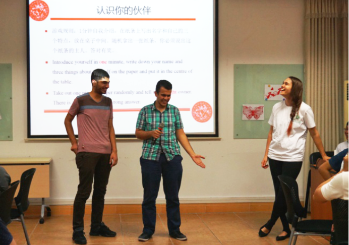 Naomi Lounsbury, a graduate student from the United States, acted as host for the event. Her humor gave the salon a relaxed and lightened mood. The ice-breaker self-introduction game allowed students to practice their Chinese while getting to know their table mates. Most of the students successfully completed the game of remembering other student’s names, but Yousef Almesbahi from Yemen and Mohammed Shamia from Palestine failed at the task and were punished by having to sing an Arabic song, which they sang beautifully.