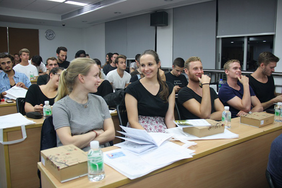 First, on behalf of SYSBS, Professor Meiji Fong warmly welcomed all the new international students at seat in his welcome remarks. Ms. Justine Xu from the Office of Curriculum and Degree Affairs and Ms. Lenore Xu from the MBA Administration Office respectively gave an informative presentation on course requirements and suggestions. Students then received an introduction provided by Ms. Cici Mou from the Office of International Affairs on campus service and urban life. Moreover, two dual-degree students from WFI shared their life experience and tips in Guangzhou. Finally, “buddies” and student delegates introduced the activities of the Buddy Club for this semester.