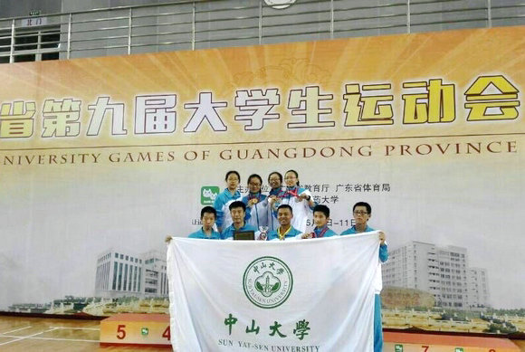 On May 6-11, 2015, the Wushu Taolu Competition of the 9th University Games of Guangdong Province was held in Guangzhou University of Chinese Medicine, attracting 23 teams in Group A and 13 teams in Group B. Eight students from Sun Yat-sen University (SYSU) participated in Group A competition, winning one gold, one silver and three bronze medals, with the whole team ranked among the top three teams in Group A.