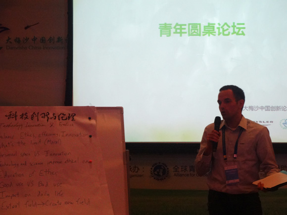 At the Youth Roundtable Forum held on November 8, Jean-Sébastien Gagnon presented the results of the group discussion on “Technology Innovation & Ethics”. He gave a profound analysis of the status quo and contradictions of the current technology innovation and social ethics, and put forward some original and constructive solutions.