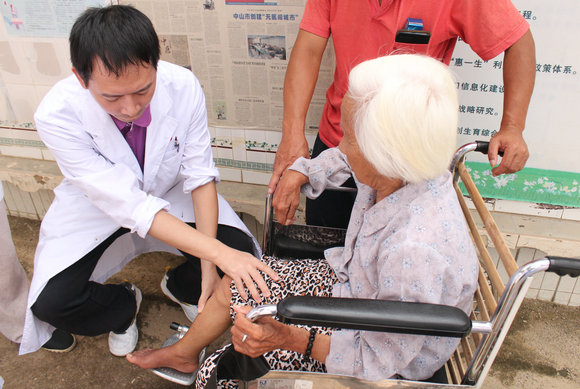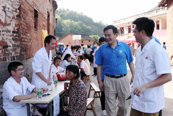 Doctors from more than 10 departments in The First Affiliated Hospital including internal medicine, otorhinolaryngology, neurology, traditional Chinese medicine, obstetrics and gynecology gave free diagnosis and treatment for nearly 200 villagers a day.