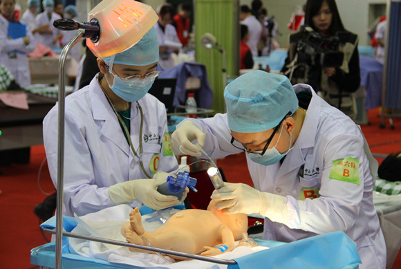 A scene of the 2013 Academic Year SYSU Clinical Skills Competition for Interns