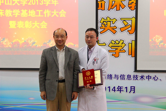 Vice President Li Mengfeng presenting certificate to the grand prize winner of SYSU Teaching Skills Competition for Clinical Faculty