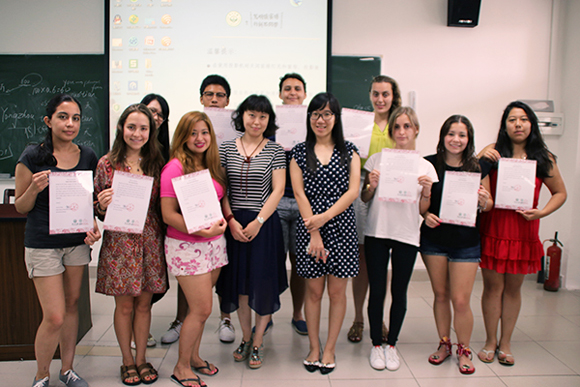 On June 12, the Mexican students attended the graduation ceremony. Ms. Zhang Zhongli awarded each student with a graduation certificate.