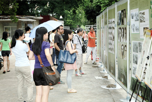 Students on South Campus visiting the exhibition presented by Sun Yat-sen University Archives