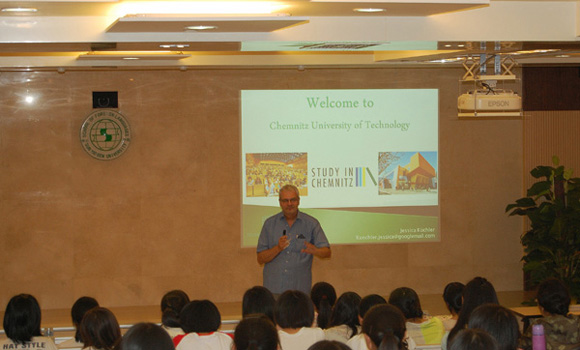 Mr. Chen Liang (German Major, Class of 2001), the General Manager of Moscow and Greater China of Barkawi Management Consulting (Shanghai) Co. Ltd., shared his experience of learning and job hunting with the freshmen. In response to their questions about study and career, Mr Chen encouraged them to spend time on their interests.