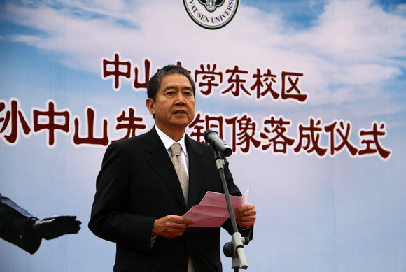 The ceremony was presided over by Li Ping, Deputy Secretary of SYSU Party Committee, and Chen Chunsheng, Executive Deputy Secretary and Vice President, Xu Jiarui, Executive Vice President, Mr. Ma Iao Hang, representative of statue donor Mr. Ma Man Kei, member of the CPPCC Hubei Committee and President of Sports and Olympic Committee of Macau, China, Mr. and Mrs. Ma Iao Iao, family representatives of Mr. Ma Man Kei, Prof. Lin Jiayou and Prof. Qiu Jie, experts of Dr. Sun Yat-sen Studies, heads of functional departments and nearly 600 faculty and student representatives attended the ceremony.