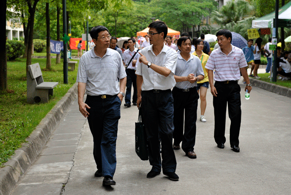 Zheng Detao, Secretary of SYSU Party Committee, Xu Ningsheng, President of SYSU, Chen Chunsheng, Executive Deputy Secretary and Vice President, Xu Jiarui, Executive Vice President, Zhu Kongjun, Deputy Secretary, and Bao Jigang, Assistant to the President, went to four campuses respectively to inspect the work of welcoming new students, convey cordial greetings to the teachers, students and staff on site, and check and guide the work of welcoming new students. On the site, the university leaders talked with the parents of new students, carefully asked the students about the details of their daily life, and inspected the dormitories and culture rooms of some schools.