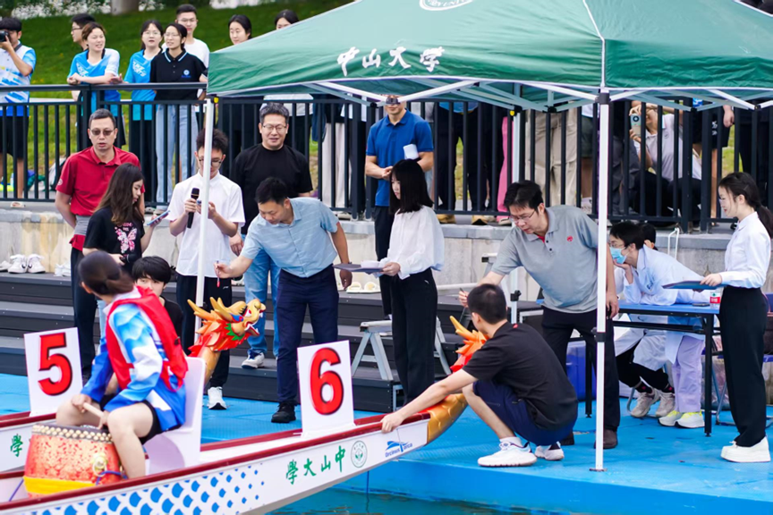 In addition to the dragon boat race, various schools of SYSU organized vibrant activities incorporating traditional Dragon Boat Festival customs, such as crafting herbal sachets (fragrant pouches) and wrapping zongzi (sticky rice dumplings).