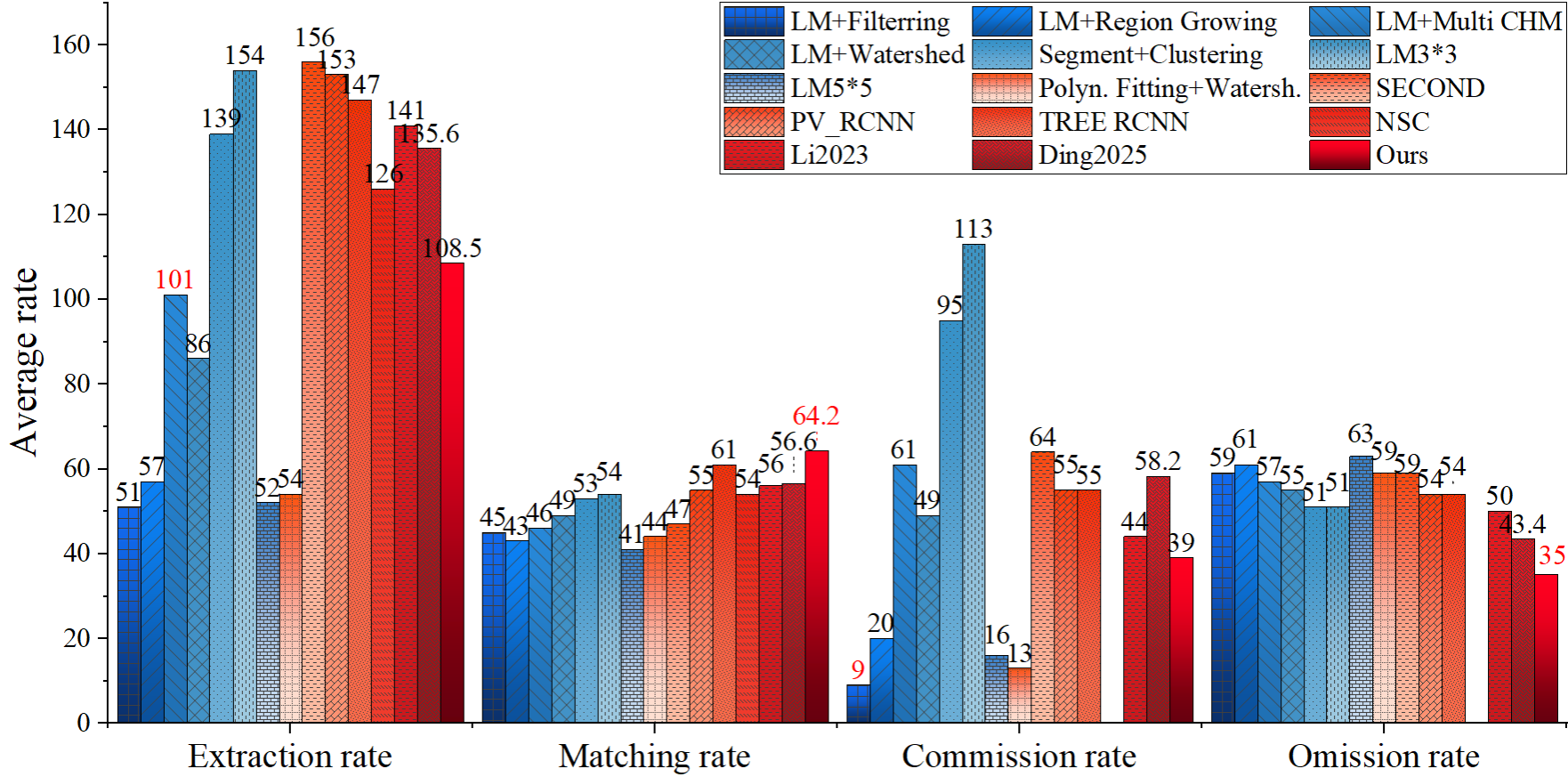 The results from other commercial software show limitations, including over-segmentation of individual trees and high sensitivity to parameter settings.