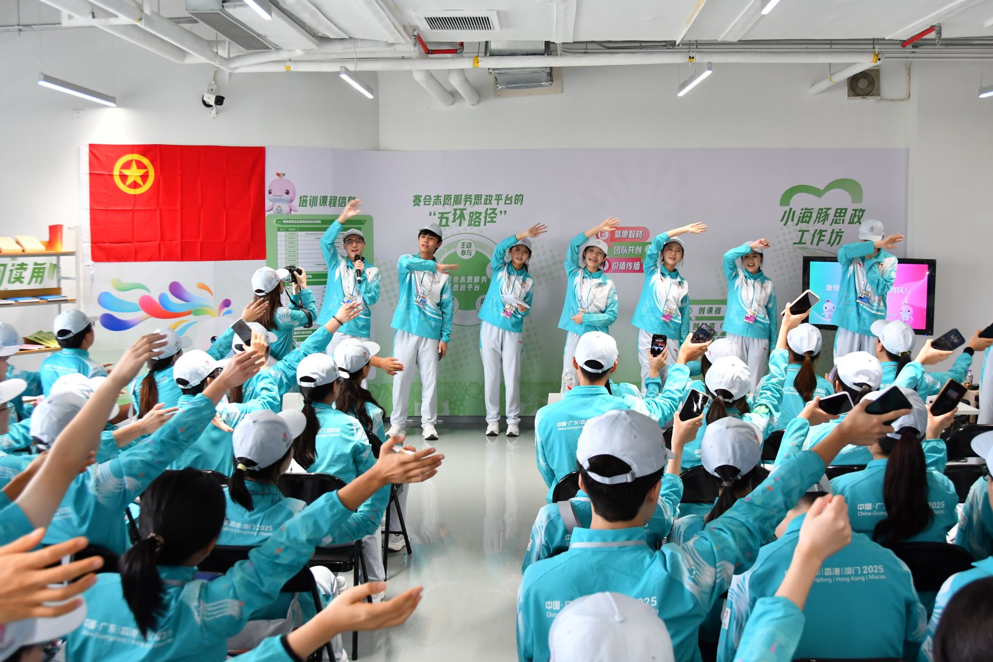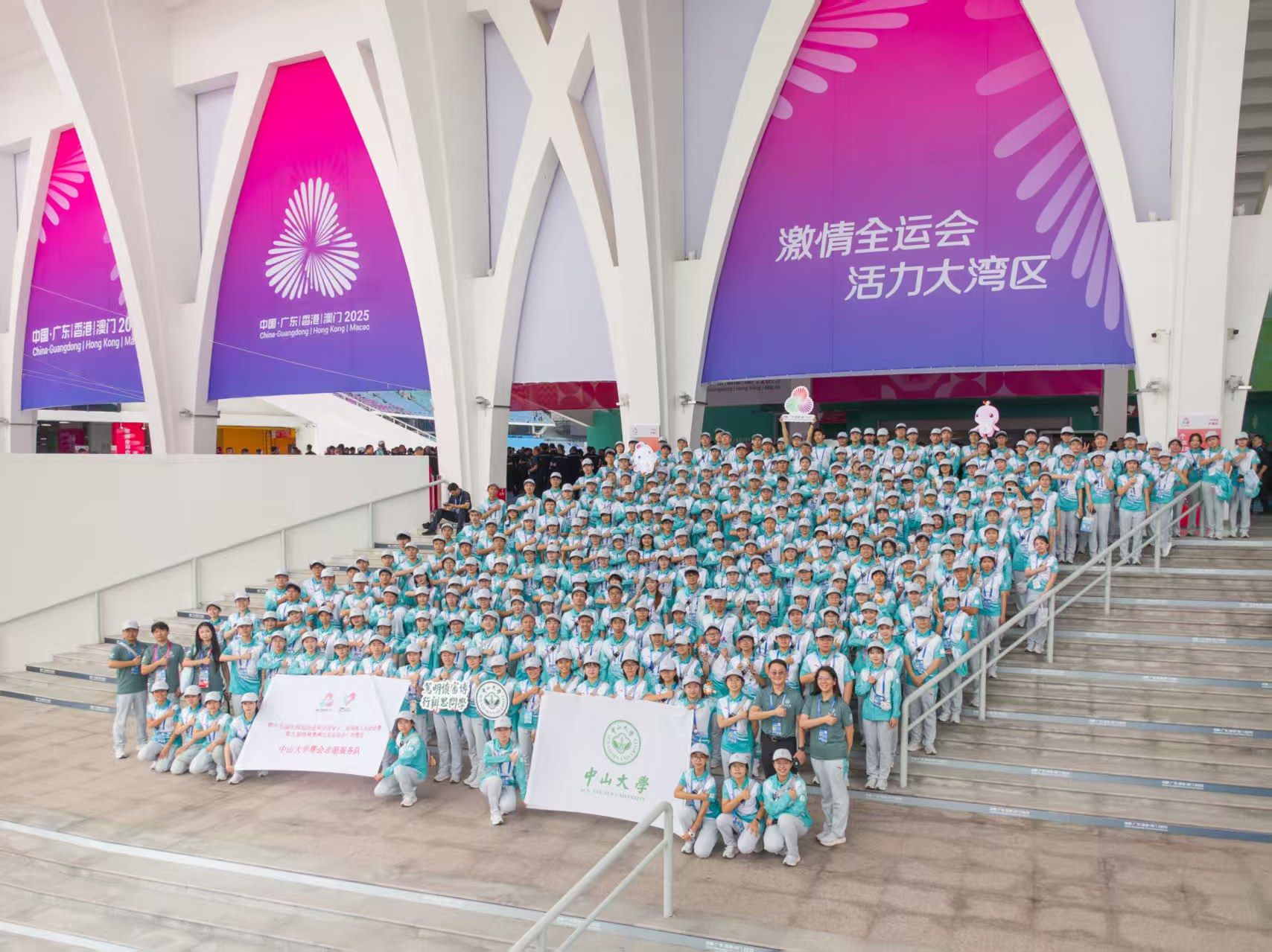 Meanwhile, SYSU's "Little Dolphins" volunteer team served as a vibrant force throughout the event. A total of 906 volunteers were deployed across Guangzhou, Shenzhen, and Zhuhai, with 427 participating in the opening ceremony following months of rigorous training. Their duties spanned audience services, venue operations, protocol, and cheerleading.