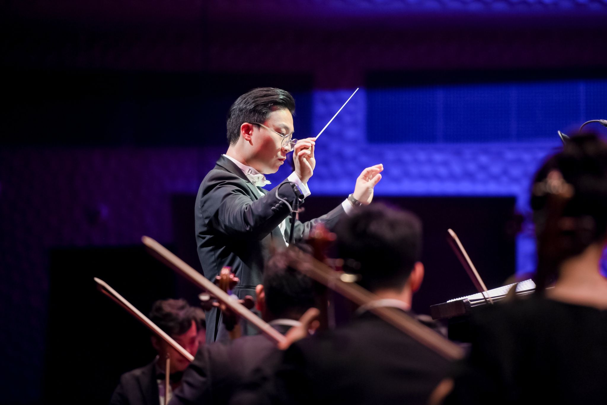 Associate Professor Huan Meng conducting the Shenzhen Campus performance