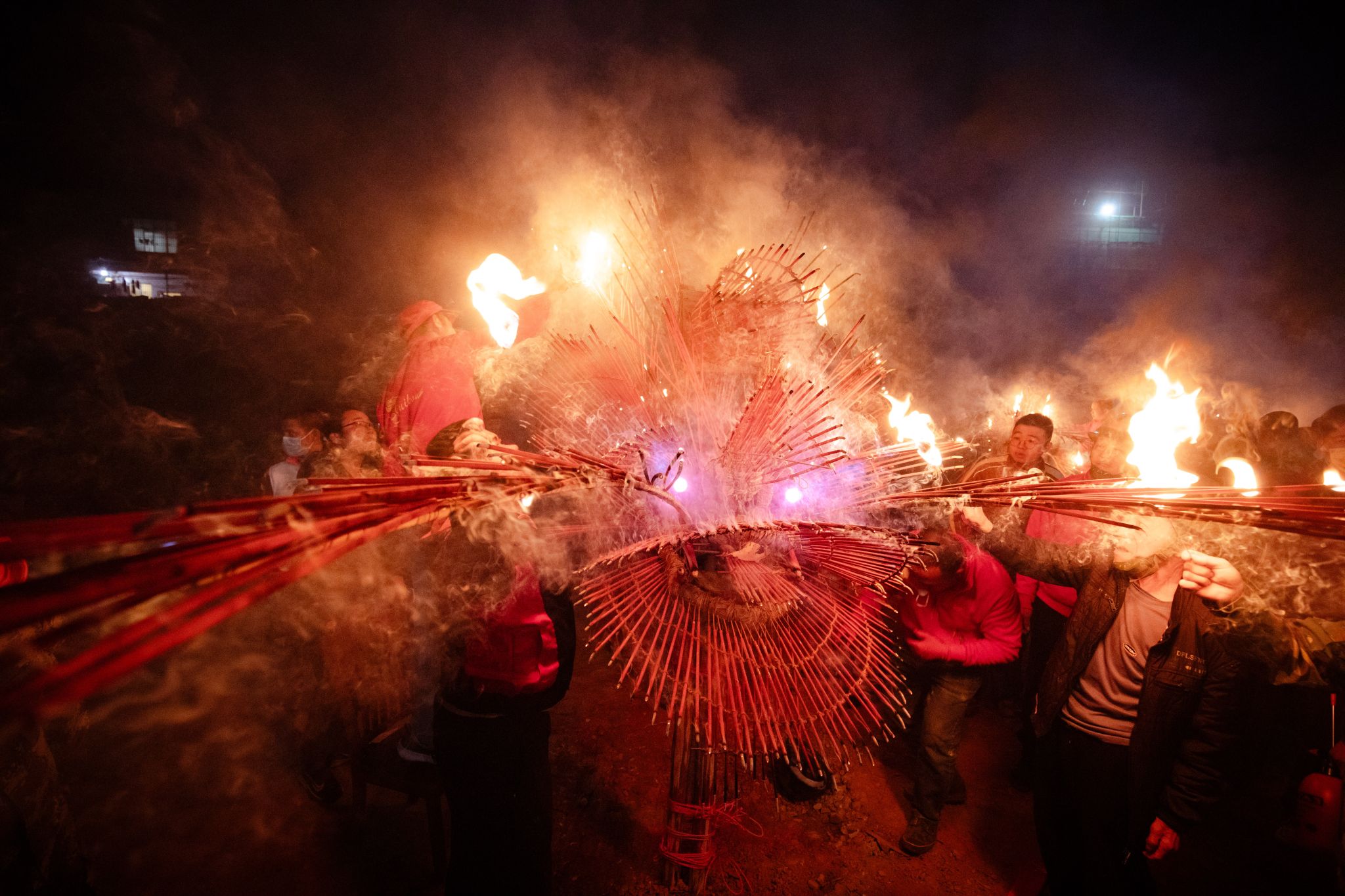 As night fell, the spectacle reached its crescendo with the "Incense Dragon" (Xianghuolong) parade. Maneuvered by over thirty men accompanied by a lively chorus of gongs, the glowing dragon surged through the darkness, shedding golden sparks like a mythical crimson dragon. The night concluded with the sacred tradition of collecting "Dragon Head Incense," as villagers took home the embers symbolizing peace and prosperity. Witnessing such vibrant, magnificent scenes was a truly soul-stirring New Year experience.