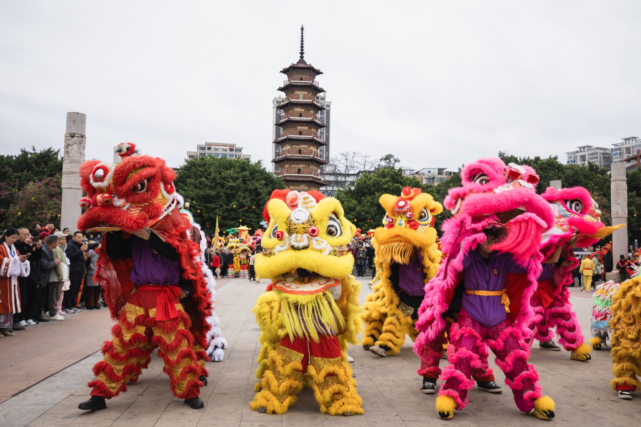 This Spring Festival, I was fully immersed in the rich Hakka cultural heritage of Nanxiong through a series of breathtaking folk festivities. On Chinese New Year’s Day, the city came alive with the "Hundred Lions" parade, where the synchronized lion dances and the traditional "Dancing Spring Ox" blended ancient traditions seamlessly into the festive atmosphere, drawing thunderous applause from the crowds.