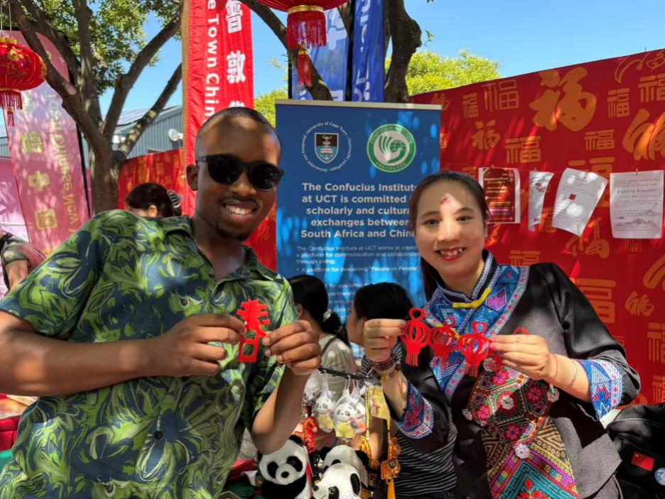 As volunteers from SYSU serving at the Confucius Institute at the University of Cape Town (UCT), we celebrated a heartwarming Chinese New Year in South Africa. At the city's iconic V&A Waterfront, we hosted a cultural booth where we introduced locals to traditional customs — paper cutting, lantern making, and pasting “Fu” (福,meaning “blessings”) characters — bringing an authentic taste of the Spring Festival to a foreign shore.