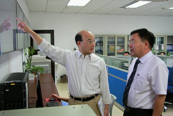 SYSU Vice President Prof. Li Mengfeng introduces the scientific instruments public platform at Zhongshan School of Medicine.