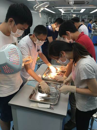 Residents trained at the First Affiliated Hospital of Sun Yat-sen University check out surgical tools.