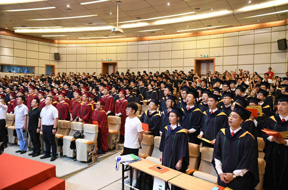 The Hospital’s Vice President Huang Meijin led all graduates to recite the oath of a medical student. All teachers and students sang the university anthem.
