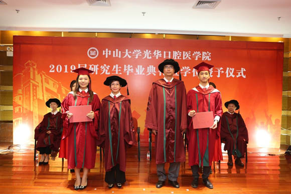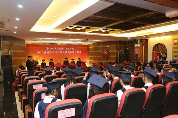 On the afternoon of June 25, Guanghua School of Stomatology held the 2019 postgraduate graduation ceremony and the degree ceremony in the conference center on the 9th floor of the Hospital of Stomatology. The school leaders, supervisor representatives, the 2019 graduates and their friends and relatives attended the ceremony. The School’s Deputy Dean Lin Zhengmei presided over the ceremony.