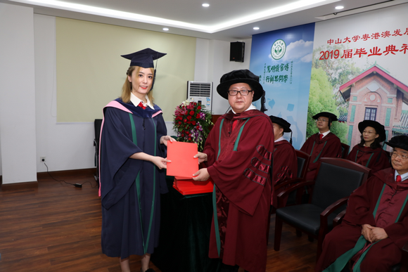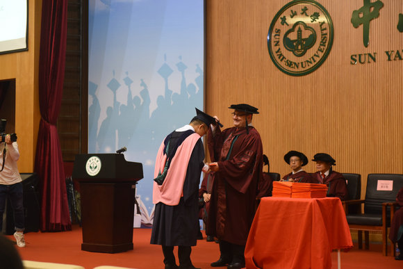 Deputy Dean Chen Dingquan read the graduation precept written by Dr. Sun Yat-sen, all graduates replied “obey the instructions”. Dean Miguel Nunes turned the tassel for every master’s and doctoral degree recipient, presented them with graduation booklets, shook hands and took photos.
