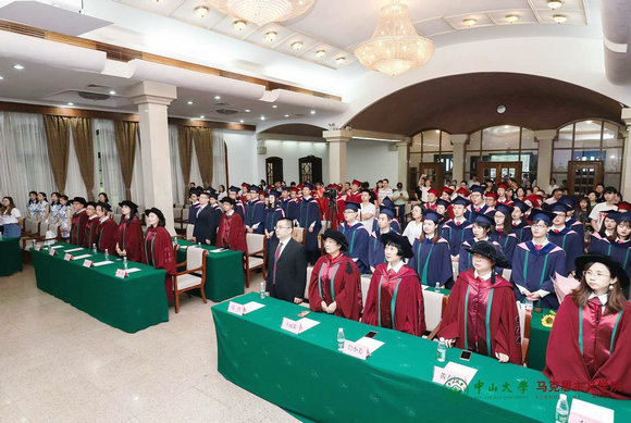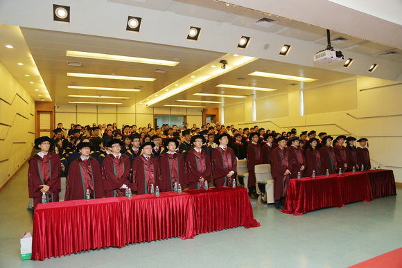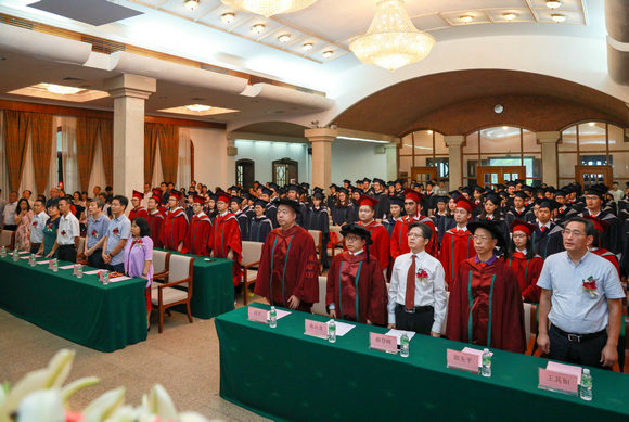 The degree ceremony started with the solemn national anthem. Deputy Dean Guo Tianwu read the graduation precept written by Dr. Sun Yat-sen, all graduatesreplied “obey the instructions”.