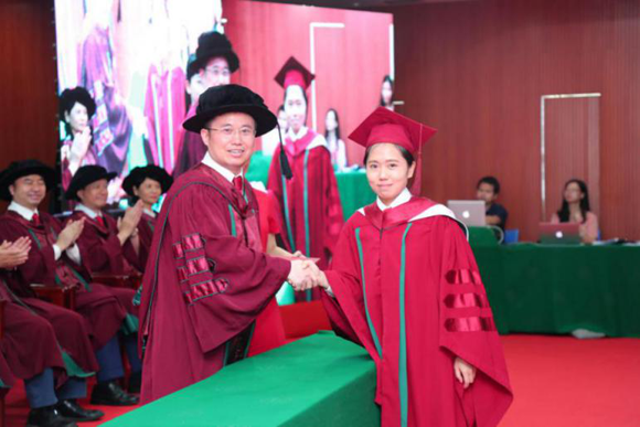 Dean Wu Zhigang is turning the tassel for the graduate.
