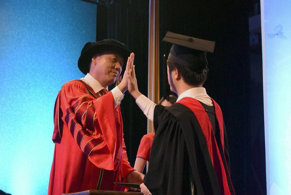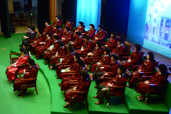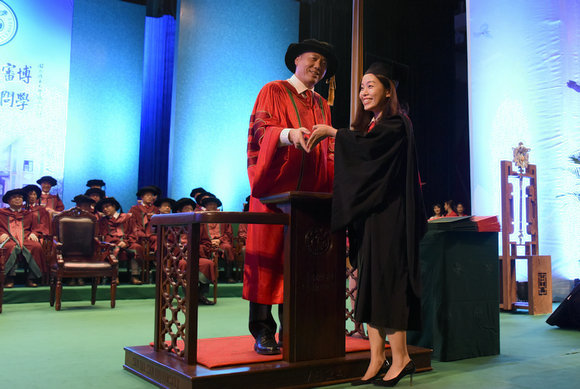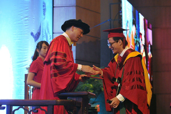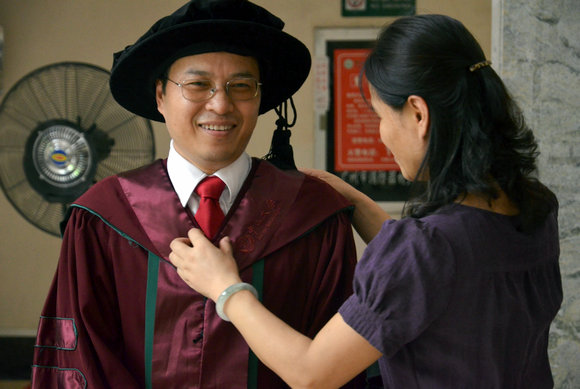 Putting on the academic gown (Photo by Hou Yi)