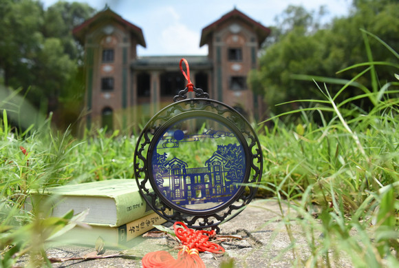 A paper cut of the Swasey Hall by Yat-sen Creative Studio
