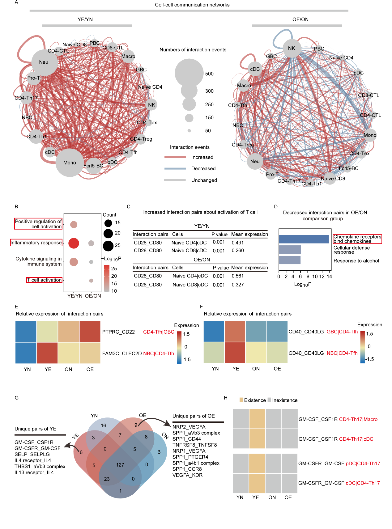 Via analyzing the ligand-receptor pairs, researchers observed loss of GM-CSF and its receptors in the old mice (Figure. 3A, G). Additionally, GM-CSF and its receptors were mainly located between Th17 cells and antigen-presenting cells (APCs) (Figure. 3H). Th17 cells are divided into pathogenic and non-pathogenic types and the secretion of GM-CSF is one of the markers of pathogenic Th17 cells. Therefore, researchers speculated that Th17 cells from old mice are deficient in GM-CSF secretion which resulted in lower pathogenicity, and validated this hypothesis by flow cytometry and immunofluorescence (Figure. 3).